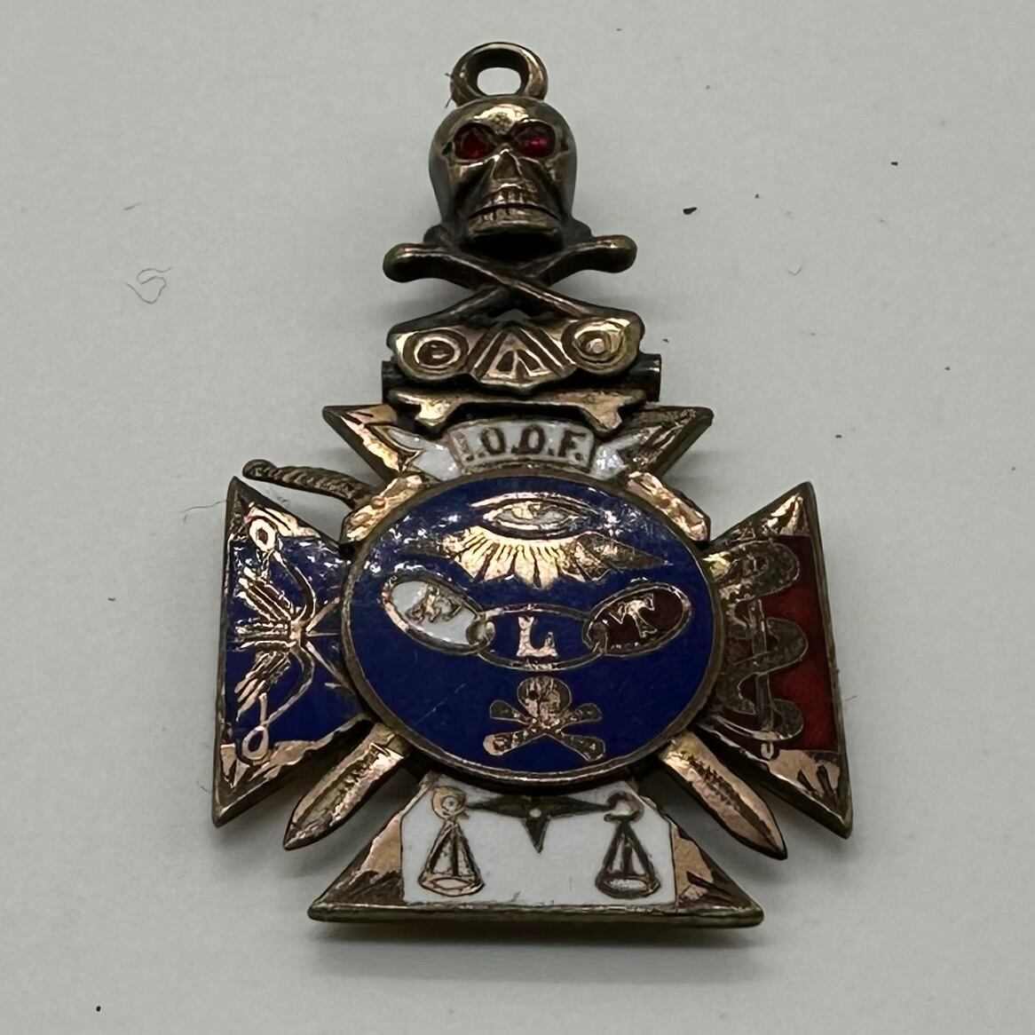 1910's ANTIQUE ODDFELLOWS FOB CHAIN CHARM